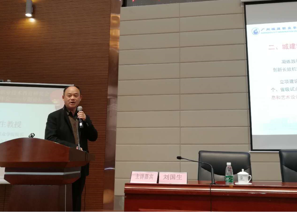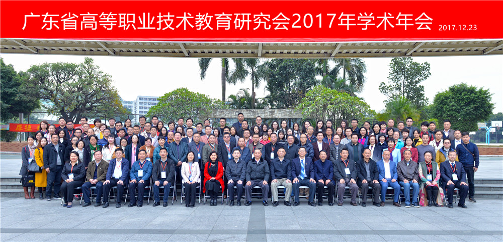12月23日,广东省高等职业技术教育研究会2017年学术年会在广州科技贸易职业学院隆重举行,省教育厅副巡视员胡振敏,省职业教育学会会长李小鲁,省教研院副院长李海东,省高教育研究会会长郭杰等领导和全省五十余所高职院校、科研机构及行业企业280余名专家学者出席了会议。副校长王媚莎、创教学院常务副院长陈楠、继教学院副院长王参军、科技处处长杨雄辉等参加了年会。校长刘国生应邀出席年会作了题为“以产教融合力促精准育人”的专题报告。