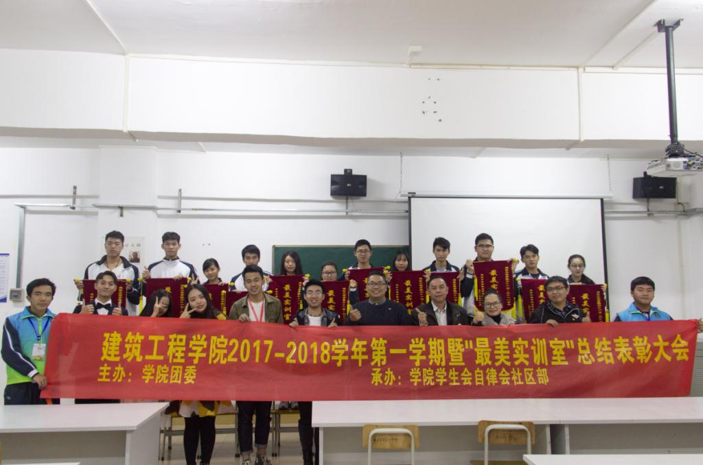为进一步加强实训场地建设,促进学生行为养成教育,12月27日晚上,由建筑工程学院团委主办、学生会社区部承办的建筑工程学院2017-2018学年第一学期“最美实训室”表彰大会于建工机电楼A503室隆重举行。学院院长助理陈勇、学院团委书记彭聪、实训室管理员刘天雯、党建办公室指导老师邹超、17级辅导员代表方兴,以及学生会社区部、2017级全体生活委员参加了本次会议。