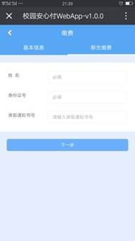 3、点击进入缴费,在新生缴费里,输入个人姓名、身份证、缴费编号、核对个人基础信息点击下一步。(初始密码:111111)