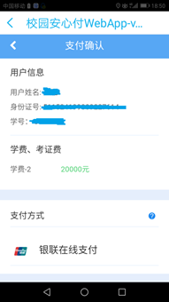 6、在订单支付页面,输入银联卡号信息(只能储蓄卡),按提示输入相关支付信息,点击“确认付款”。(注意:建议使用与银行卡预留手机号相同的手机进行缴费操作)