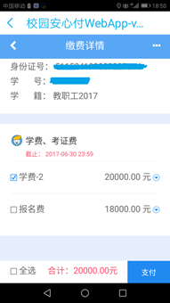 4、选择进入需要缴费的项目,核对缴费项目信息与金额,选择需要缴纳的费用细项,点击“支付”。