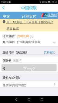 5、确认支付信息无误后,选择银联在线支付方式,选择付款银行,点击“支付”