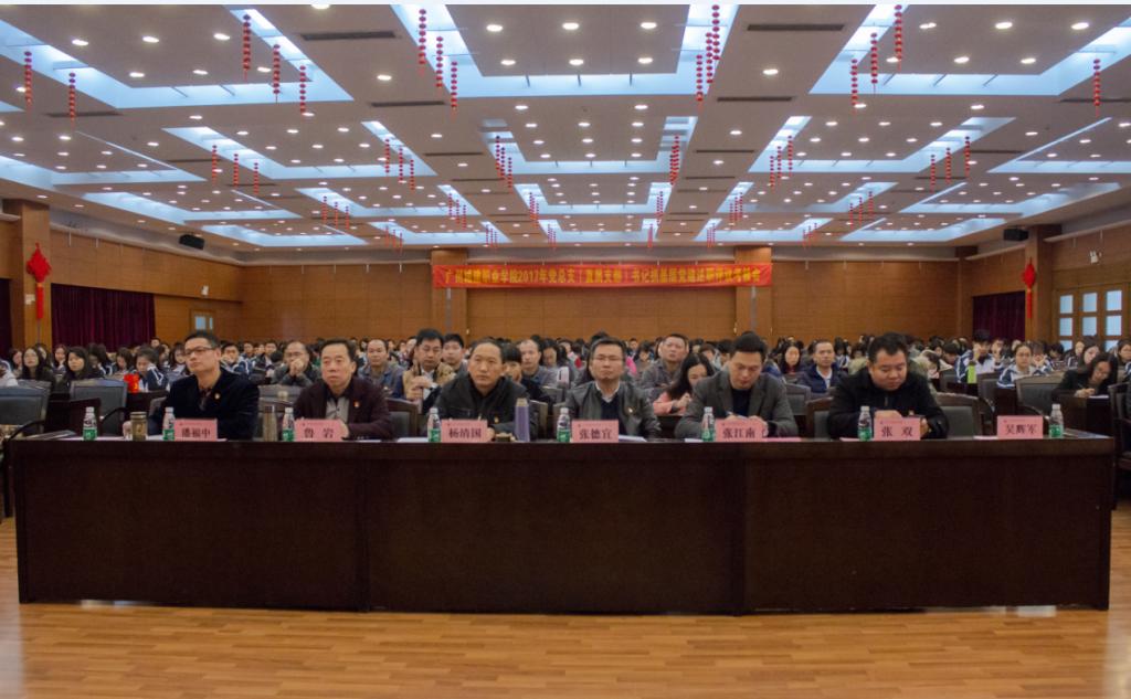 12月20日下午,学校2017年党总支(直属支部)书记抓基层党建述职评议考核会在人文艺术楼四楼报告厅召开。党委书记杨清国,副书记张德宜、鲁岩,统战部长张江南,宣传部长张双,青年委员潘福中,各党总支(直属支部)书记,全体师生党员及入党积极分子、学生代表参加了会议。党委组织部部长吴辉军主持会议。